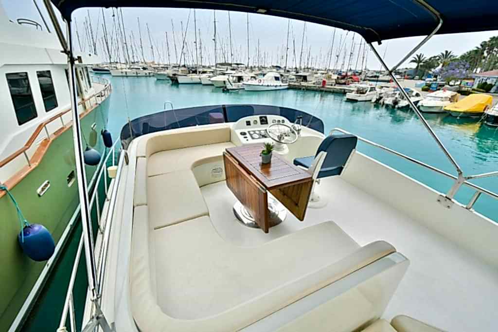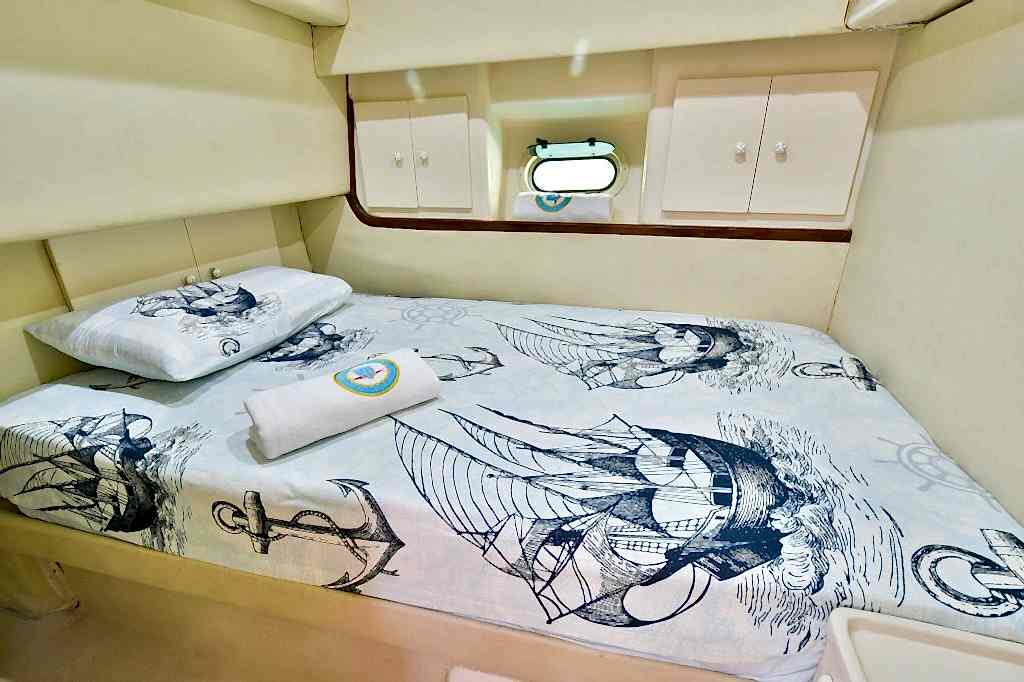 The boat has everything you might need for a pleasurable and joyful experience. Elegantly designed and decorated, the yacht features comfortable and spacious indoor and outdoor areas. More precisely, inside there are cabins, toilets with showers, an indoor lounge with comfy and sophisticated furniture, and a fully equipped kitchen.