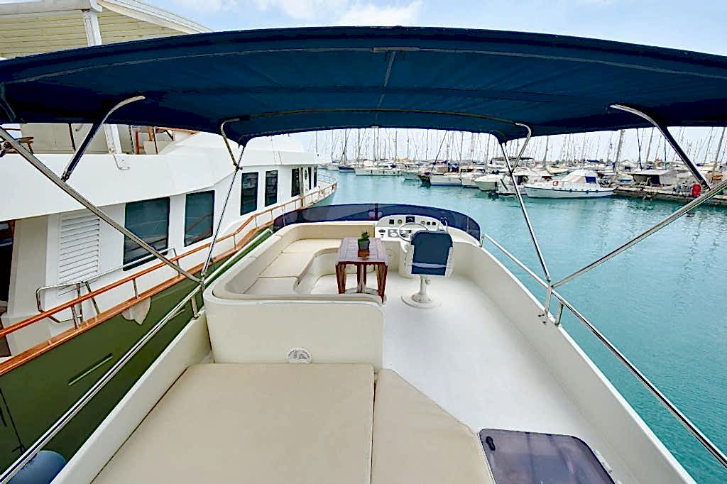 The outdoor space features an exceptionally beautiful design with lounges and areas where you can enjoy the warmth of the sun. The English-speaking and friendly crew will make every possible effort to pumper and accommodate your needs. The professional crew will also prepare and serve you lunch or dinner, depending on the time of your tour, consisting of mouth-watering flavours.
