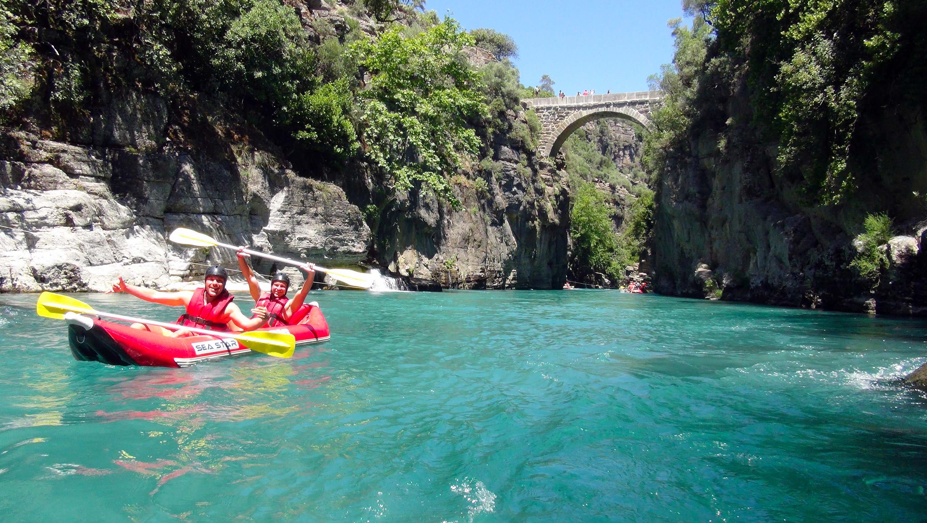 Amazing tour to the highlands of Antalya,and rafting in the while foaming waters.Full day tour starts in the morning,by early coach transfer up to the canyon.Rafting river instructor will give brief information on tour program.The group takes different size at canoes and boats.The river is favored by white water rafters because of its relatively easy rapids along a scenic course downstream from the dramatic gorge.
